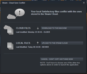 And y'all will be prompted to either upload your relieve file to the cloud or download the save file from the cloud to your PC.